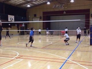体育館で男子バレーボール部が大会に向けて練習をしています。