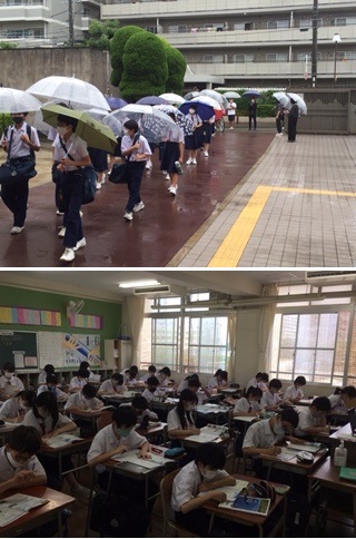 朝から雨模様ですが、生徒たちは元気に登校していました。
