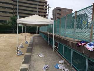 水泳の授業で見学者が多い時に、熱中症や密を避ける為に、管理作業員さんにテントを設置してもらいました。