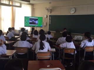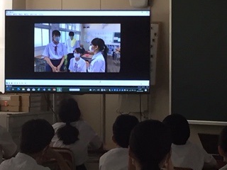 1年生は各学級ごとに作成した動画を、6クラス分全学級で視聴しました。