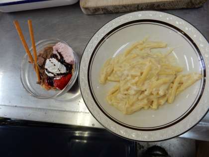 今回のメニューはグラタンとパフェです。
