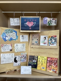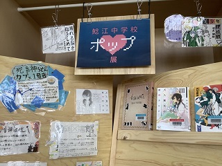 鯰江中学校の図書委員会の生徒が作成した図書紹介ポップをお借りし、本日の休館日を利用して、「鯰江中学校ポップ展」の準備を行いました。