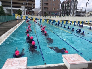 「着衣水泳」と言って、衣類を着たまま泳ぐことで、水難事故の対応策の一つとして知られています。