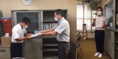 3年生が大阪市の選抜選手として活躍し、貢献したことに対しての表彰です。おめでとうございます。