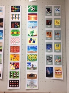 ●鯰江中学校からは、1年生は「夏休み課題」2年生は「自然物や人工物の構成」3年生は「絵文字」を出品しています。