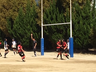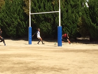 後半半ばに、相手陣内右から左に展開し、中央付近に1トライを決めてくれました。