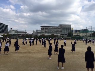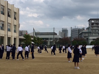 運動場では、バレーボール・ドッヂボールなどで多くの生徒が遊んでいました。