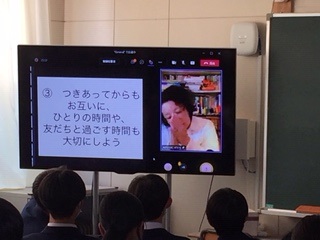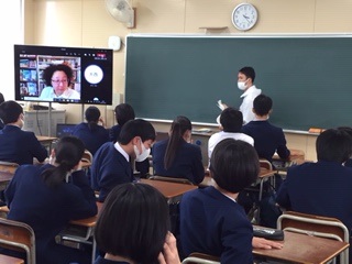 当初は、体育館で講演をしていただく予定でしたが、教室でのリモートでの実施となりました。