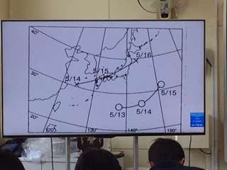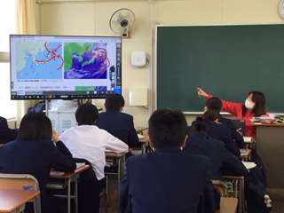 デジタル教科書を使用しての、天気図の見方について学んでいます。