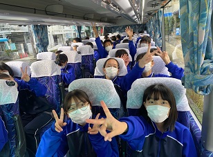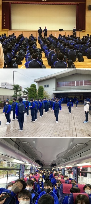朝方に降っていた雨も上がり、1・2年生が校外学習に出発しました。