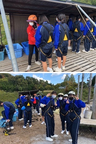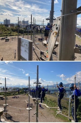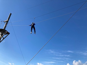 アスレチックには8mコース・4mコースやジップラインがあり、ヘルメット・ハーネス・命綱をつけて挑戦します。