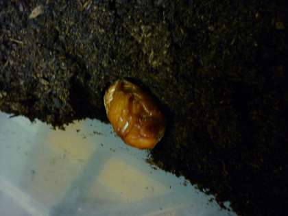 支援教室で飼っているカブトムシの幼虫がさなぎになりました。