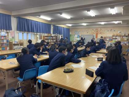 生徒達から吸い上げられた中から、来年度の生徒会スローガンと鶴文字決めです。