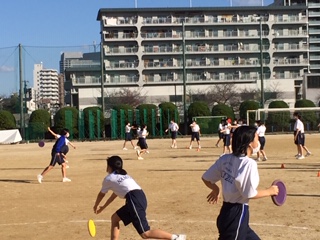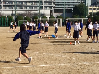 今日は練習用のディスクで、投げる練習と走りながらパスを受ける練習をしていました。