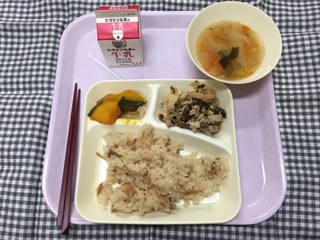 給食も、かやくご飯と冬至にちなんでかぼちゃがありました。