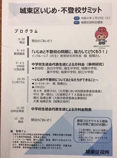 本日、城東区役所で「城東区いじめ・不登校サミット」が開催されました。