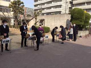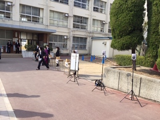 コロナウイルス感染予防対策の為、保護者の方は、入口で検温と消毒をした後に受付をしてもらいました。