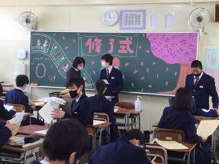 大清掃、学年集会のあと令和3年度の修了式が行われました。