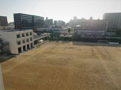 校舎横の桜が満開です。