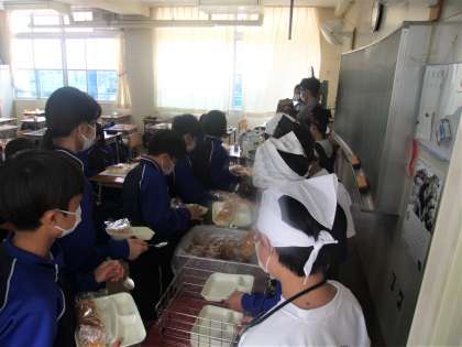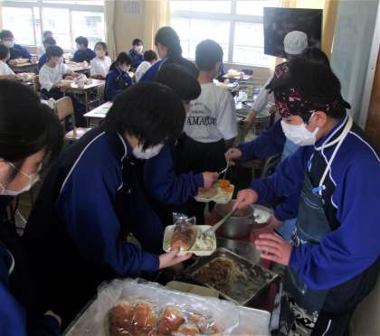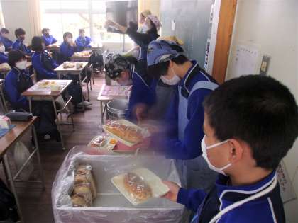 給食の配膳風景です。