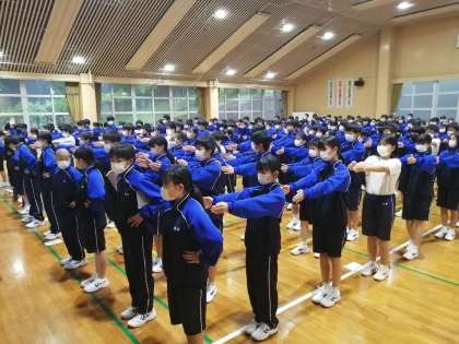 起床6時から部屋の片付けをし、今から朝のつどいです