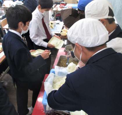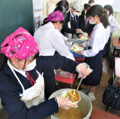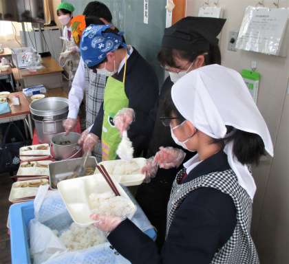 給食の配膳風景です。