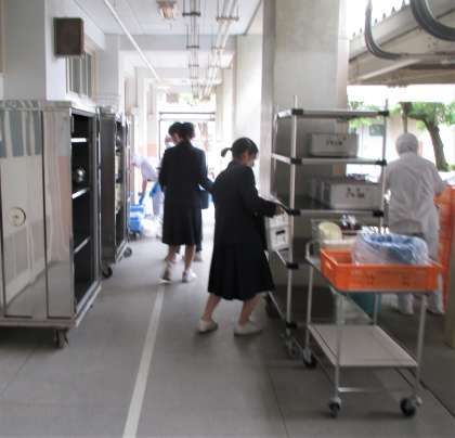 給食の配膳と食管などの後片付けです。