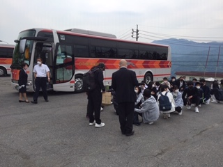 その後はバスに乗車し、2・3・4組は午前のラフティング場所に向かいます。