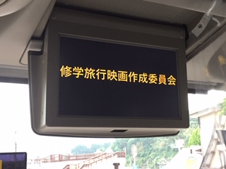 バス内ではバスレクで有志が作成した映画を見ています。
