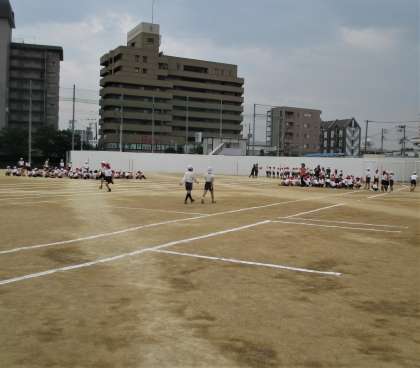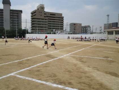 鯰江東小学校の4年生と5年生の児童が、本校の運動場を使用しました。