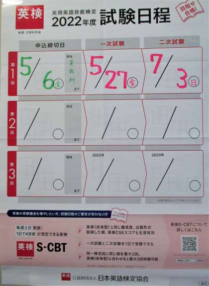 明日5月27日(金)英語検定一次試験が、本校会場で実施されます。