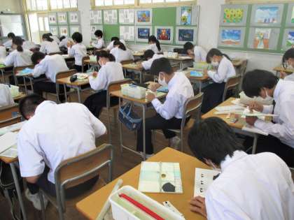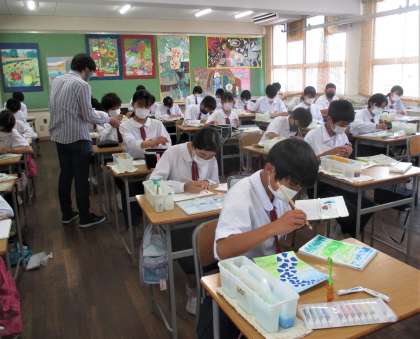 2年生 美術 絵の具で色彩です。