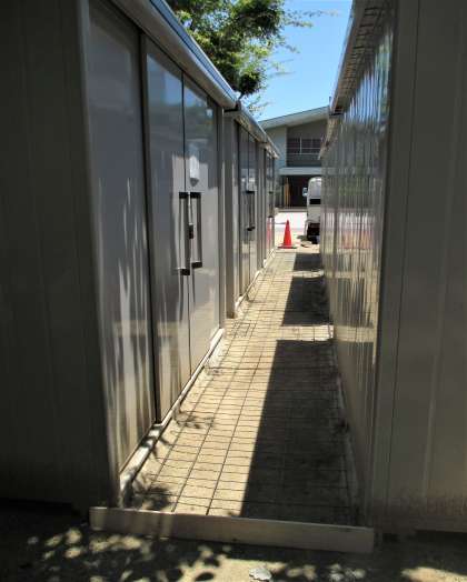 正門横 倉庫前通路の補修工事にはいっています。