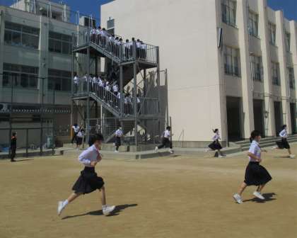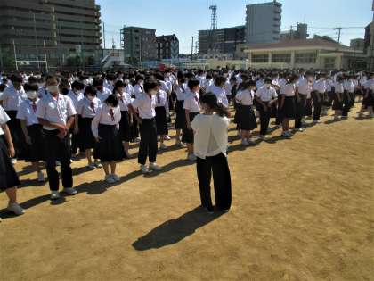 熱中症対策で運動場に集合後、ただちに教室へもどりました。