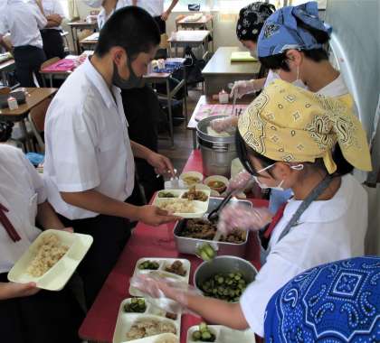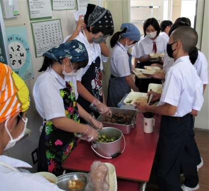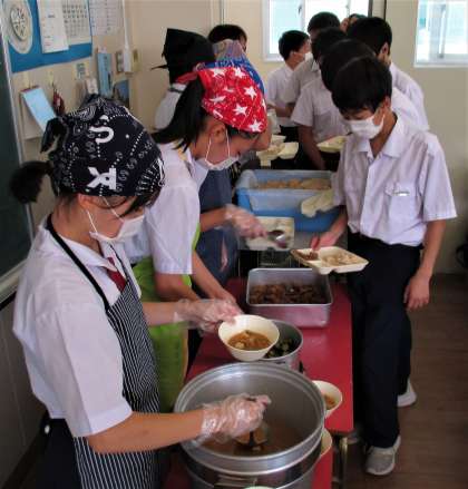 給食の配膳風景です。