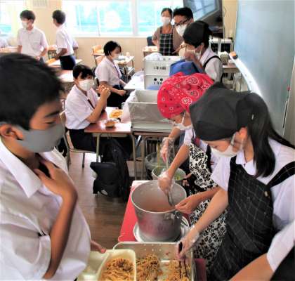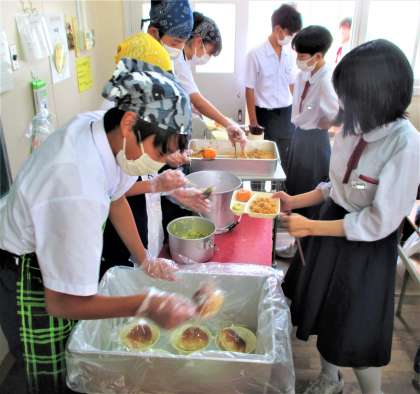 給食の配膳風景です。