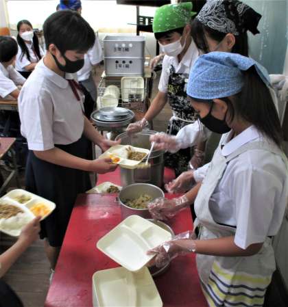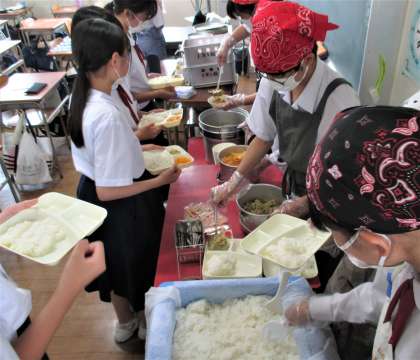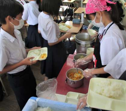 給食の配膳風景です。