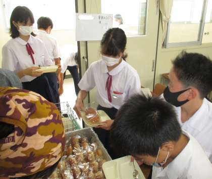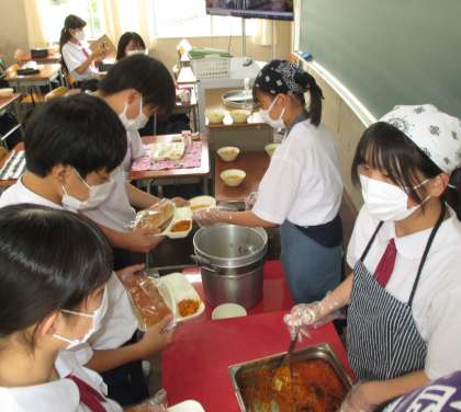 給食の配膳風景です。