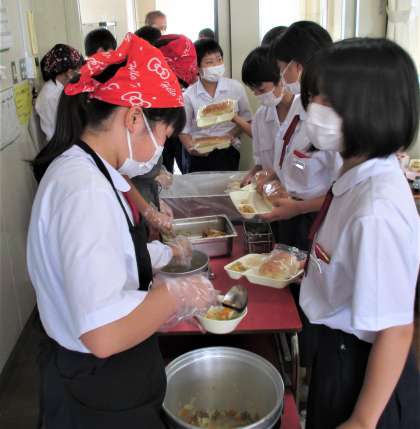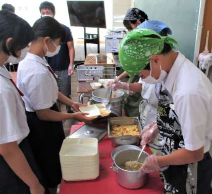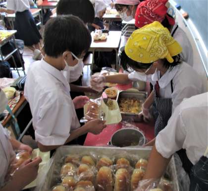 給食の配膳風景です。