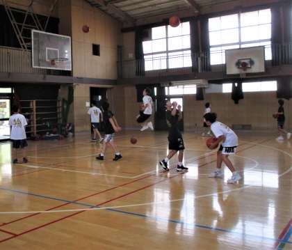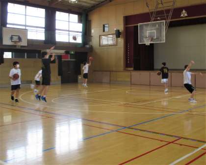 体育館 男子バスケットボール部の練習風景です。