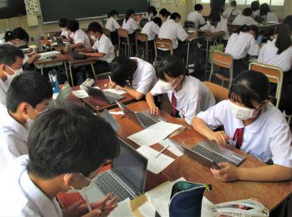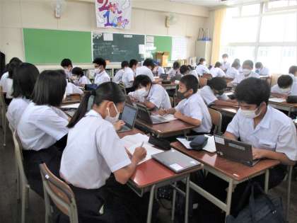 テーマは「平和」で文化祭の展示発表にむけて準備です。