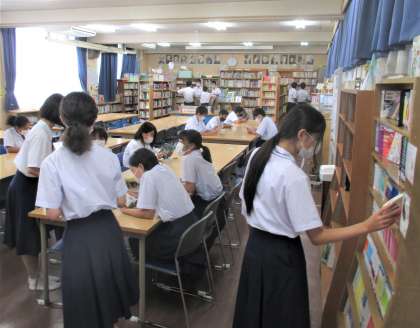 昼休み 図書室の利用風景です。