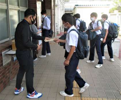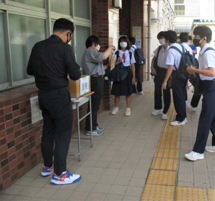 登校時に、漢字能力検定 申し込みの受付を行いました。