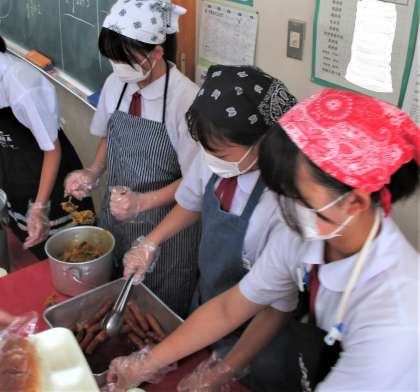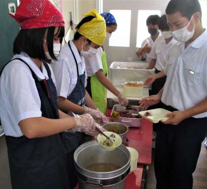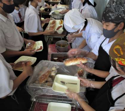 給食の配膳風景です。