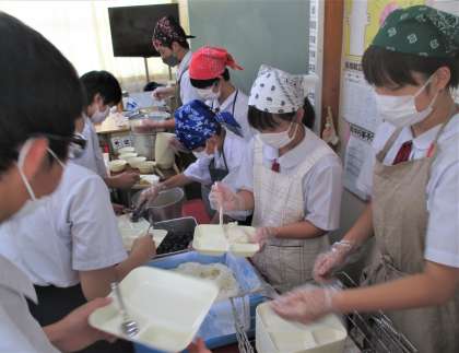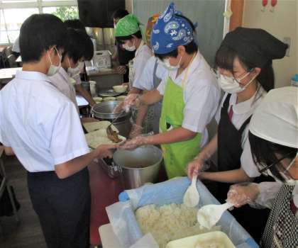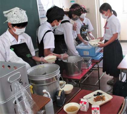 給食の配膳風景です。