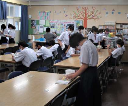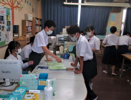 昼休み 図書室の利用風景です。