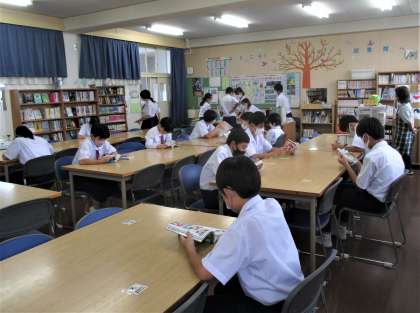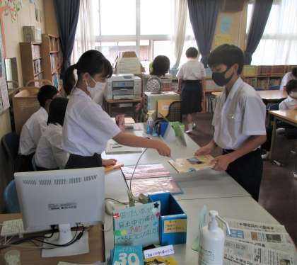 昼休み 図書室の利用風景です。