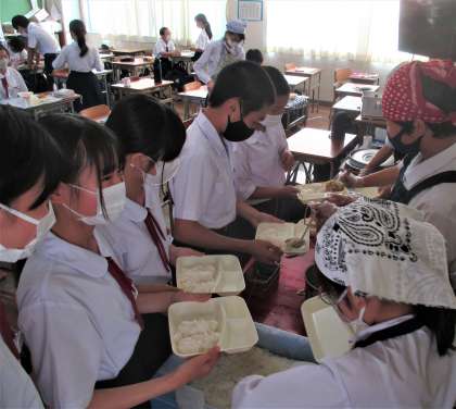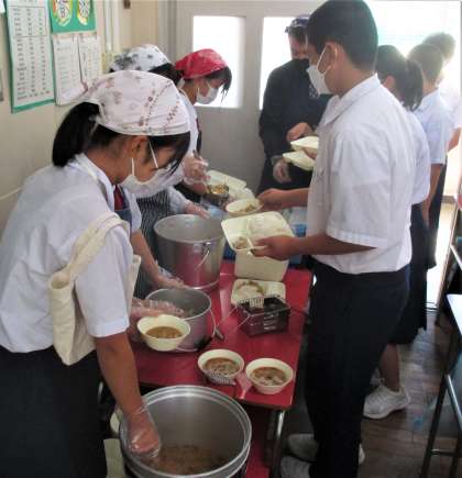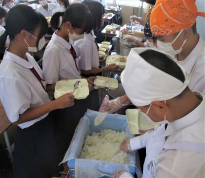 給食の配膳風景です。
