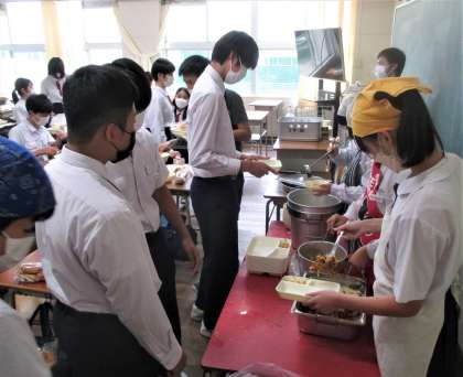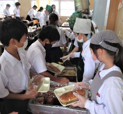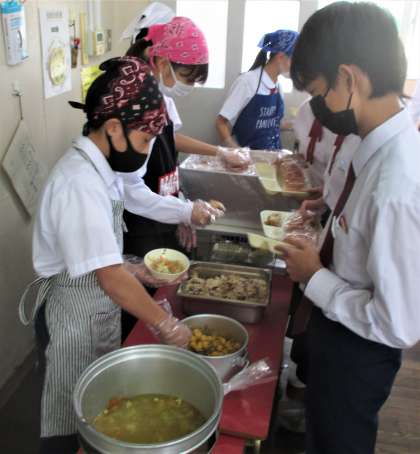 給食の配膳風景です。