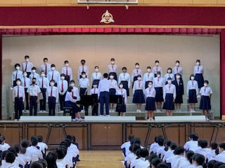 2年生は合唱コンクールに向け、体育館で課題曲と自由曲のそれぞれ1番のみを歌いました。3年ぶりの合唱コンクールで、2年生も中学校では初めてとなります。
